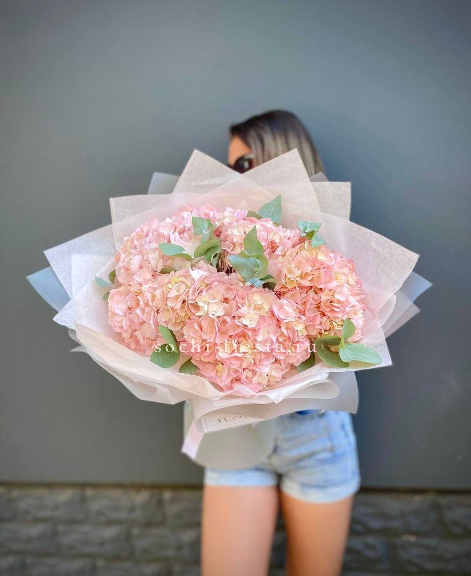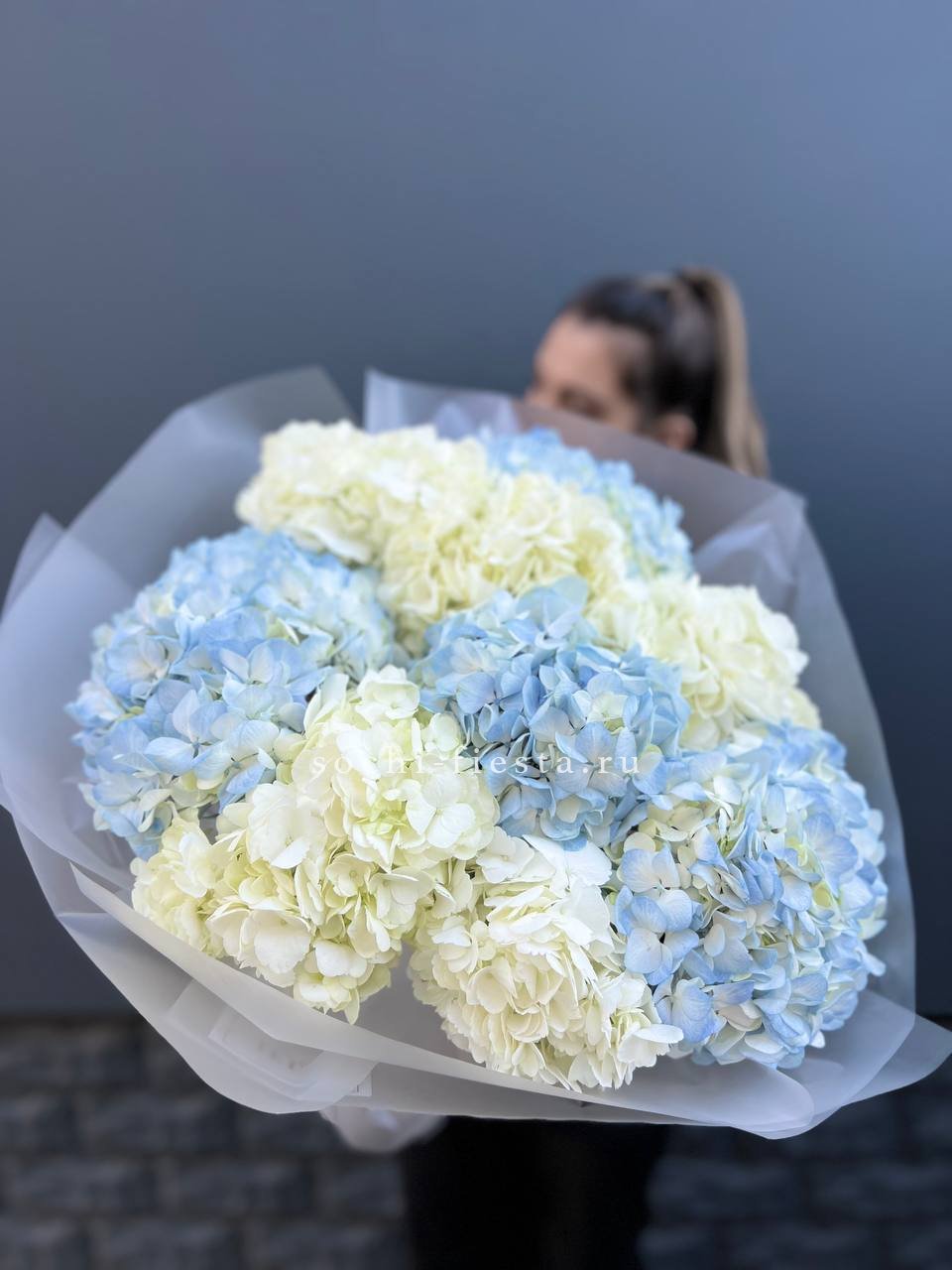 гортензия - 7 шт., лента, дизайнерская упаковка.