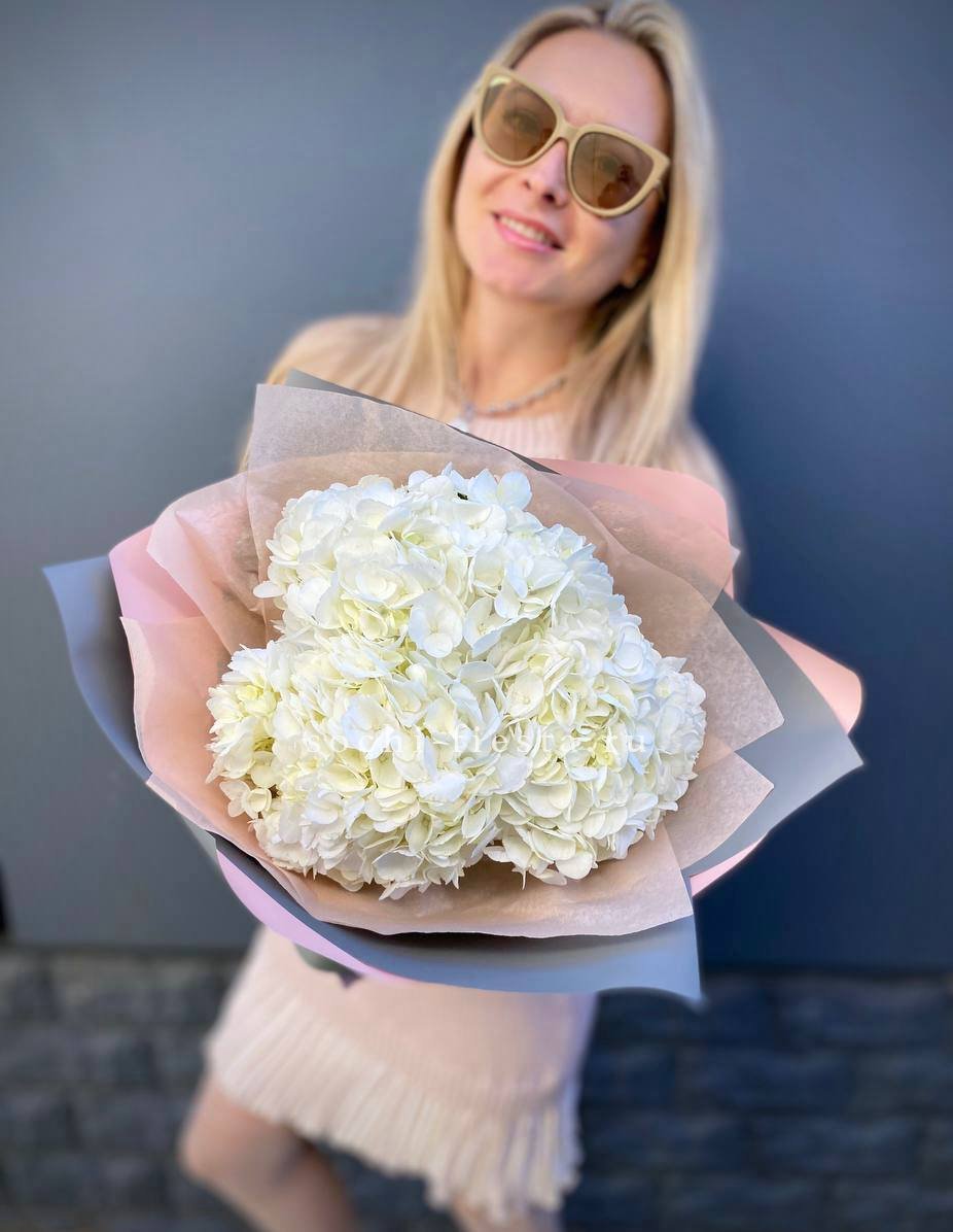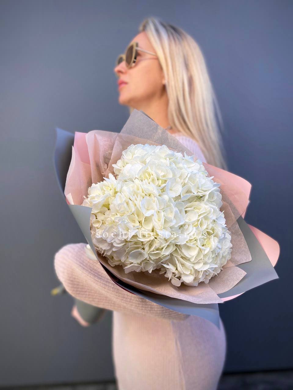 Для заказа товара "Букет из трёх белых гортензий" с доставкой в Перми нажмите в корзину