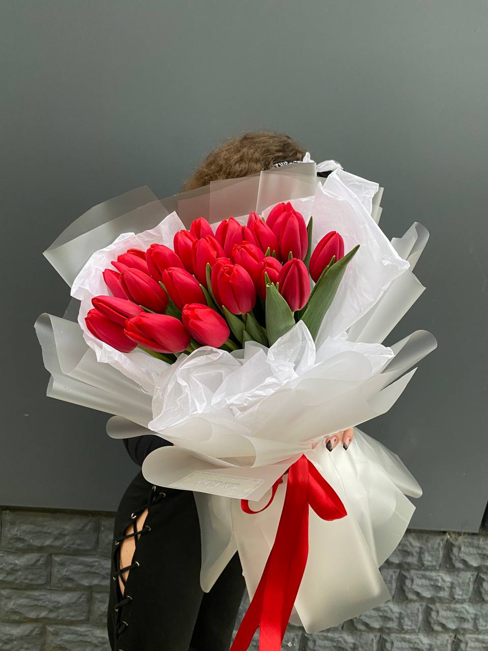 37 тюльпанов, лента, крафт.