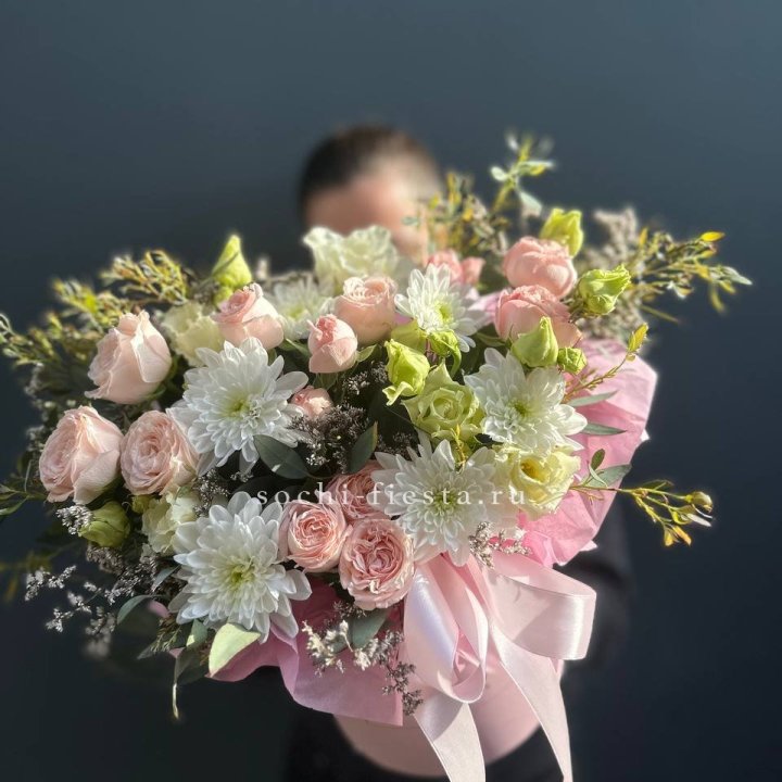 Особым сегментом остаются подарки учителям и врачам — коробки M-размера в классической палитре, с хризантемами или розами. Спрос предсказуем и концентрируется вокруг 1 сентября, 5 октября, Дня медицинского работника в июне. Студия готовит эти партии заранее.