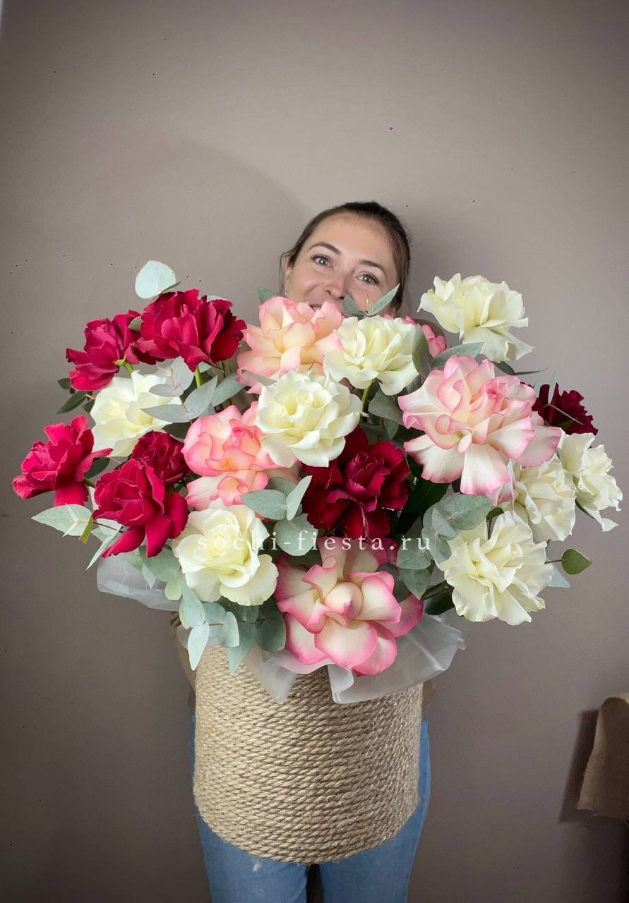 Для заказа товара "35 французских роз микс в джутовом боксе" с доставкой в Перми нажмите в корзину