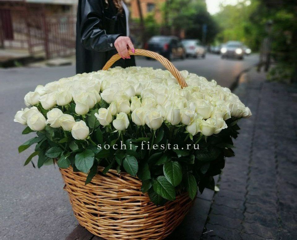 белая роза 303шт., оформление в букет или корзину на выбор.
