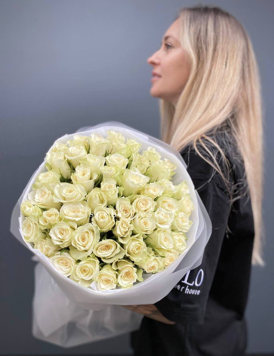 Воздушная текстура кенийских роз с их компактными бутонами и тонкими стеблями придаёт букету особую лёгкость. Матовая упаковка и тишью усиливают ощущение невесомости. Пятьдесят один цветок выглядит как облако.