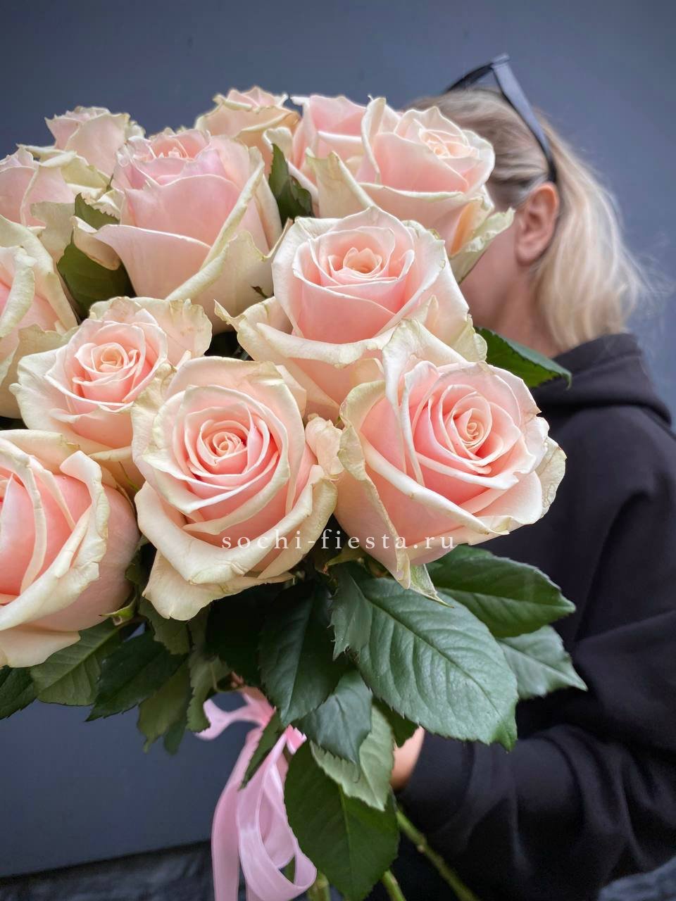 Сто одна роза в кремовых тонах — масштабная композиция с выразительным объемом. Букет наполняет пространство и создает запоминающееся визуальное присутствие.