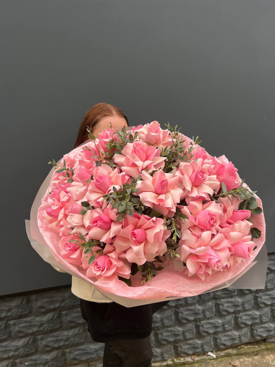 вывернутые розы - 5 шт., эвкалипт - 2шт., лента, авторская упаковка.