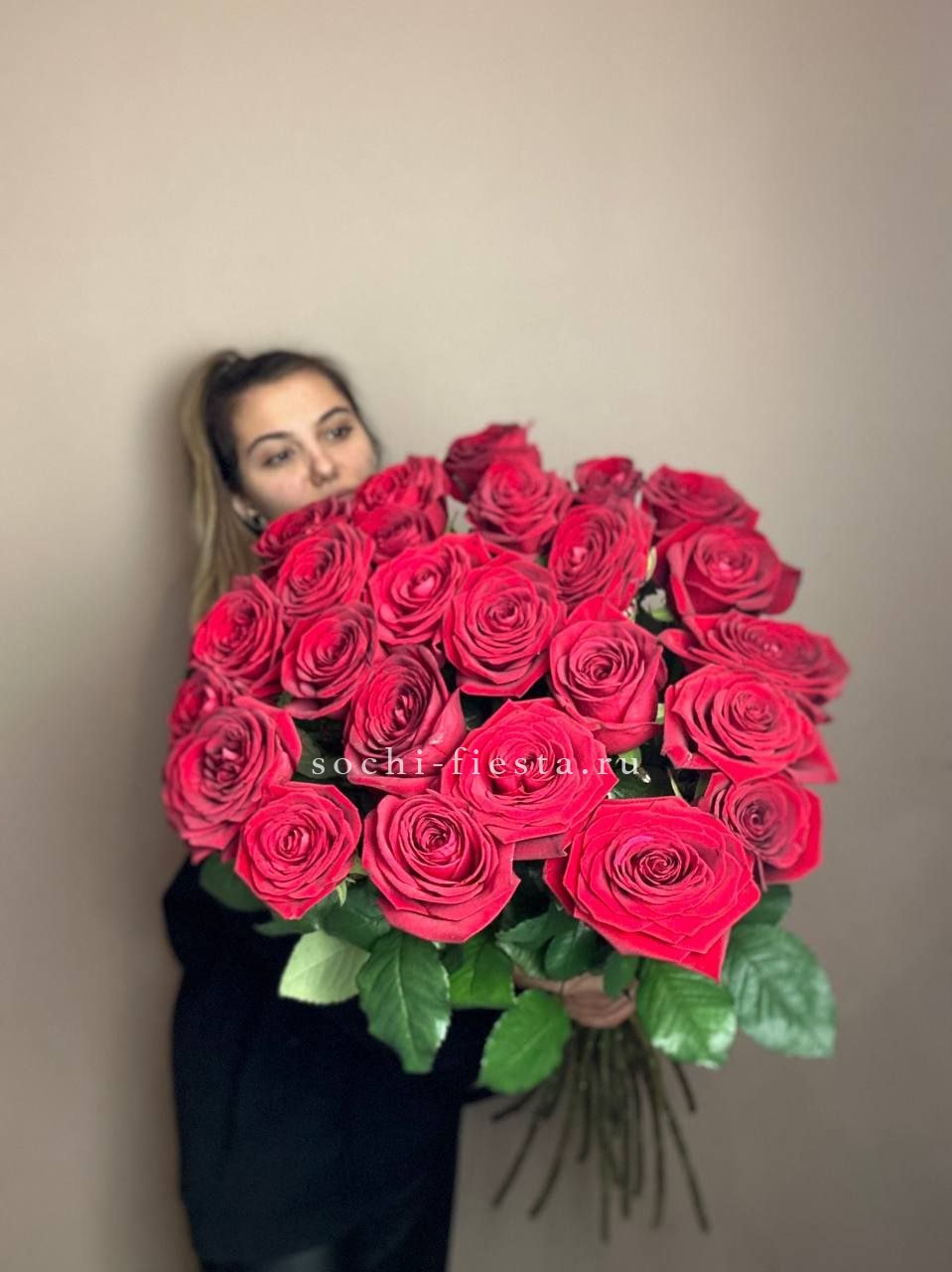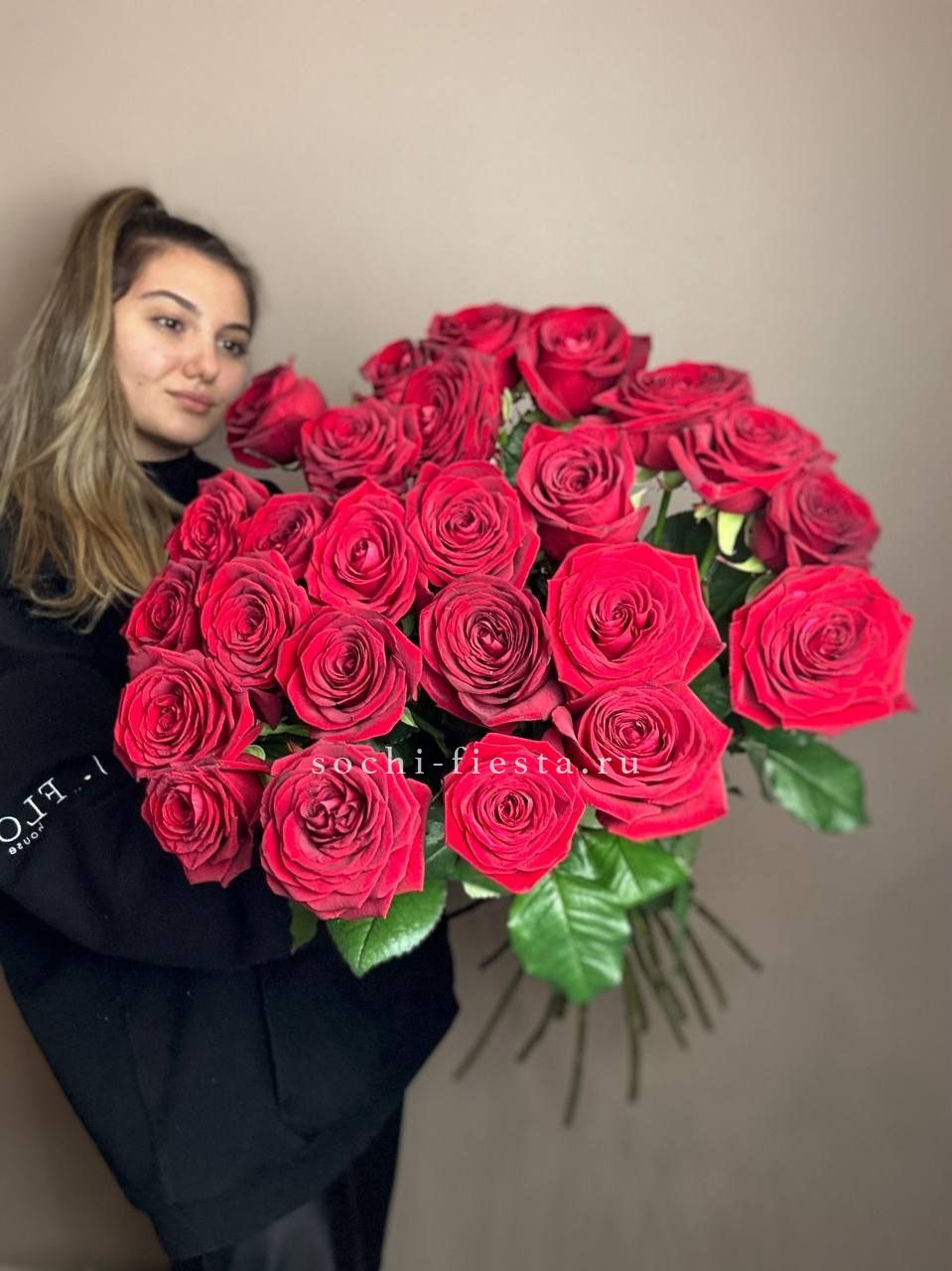 Глубокий красный тон и бархатистая фактура раскрывающихся бутонов создают насыщенное цветовое пятно. Голландские розы удерживают свежесть и форму долгое время.