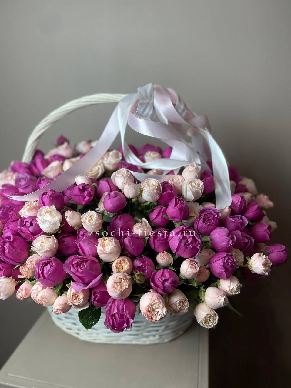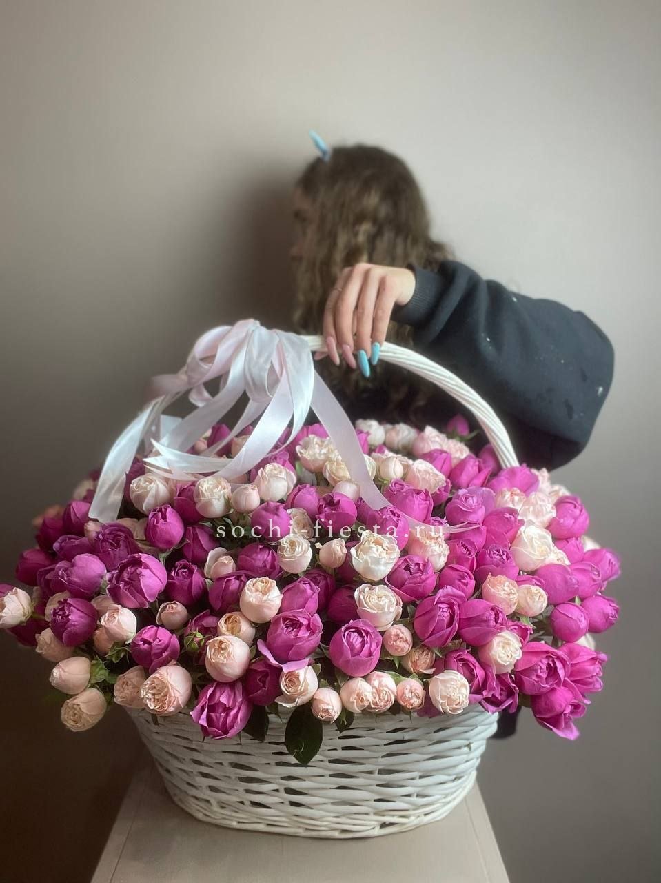 Корзина из 101 пионовидной розы