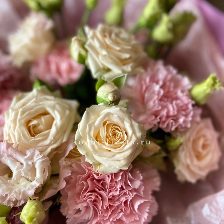 Состав сборных букетов в Перми: розы (Freedom, Mondial), хризантема кустовая, альстромерия, эустома, фрезия. Дополнительно в сезон — тюльпаны, нарциссы, ранункулюсы, ирис. Поставки в Перми раз в 3-5 дней из ближайшего регионального центра. Флорист планирует ассортимент под дату поставки и знает, что будет в наличии к нужному дню.