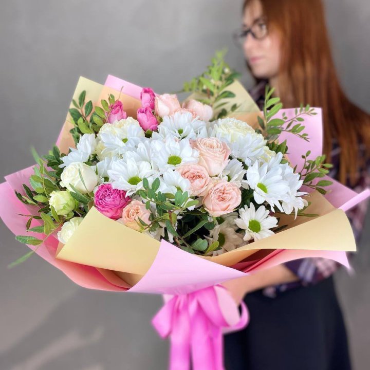 В Перми сборный букет — один из главных флористических форматов. Небольшой город не нуждается в авангарде и экспериментах: здесь ценят понятное, красивое и живое. Сборный букет с розами, хризантемами и сезонными акцентами — то, что флорист в Перми делает изо дня в день, и делает хорошо.