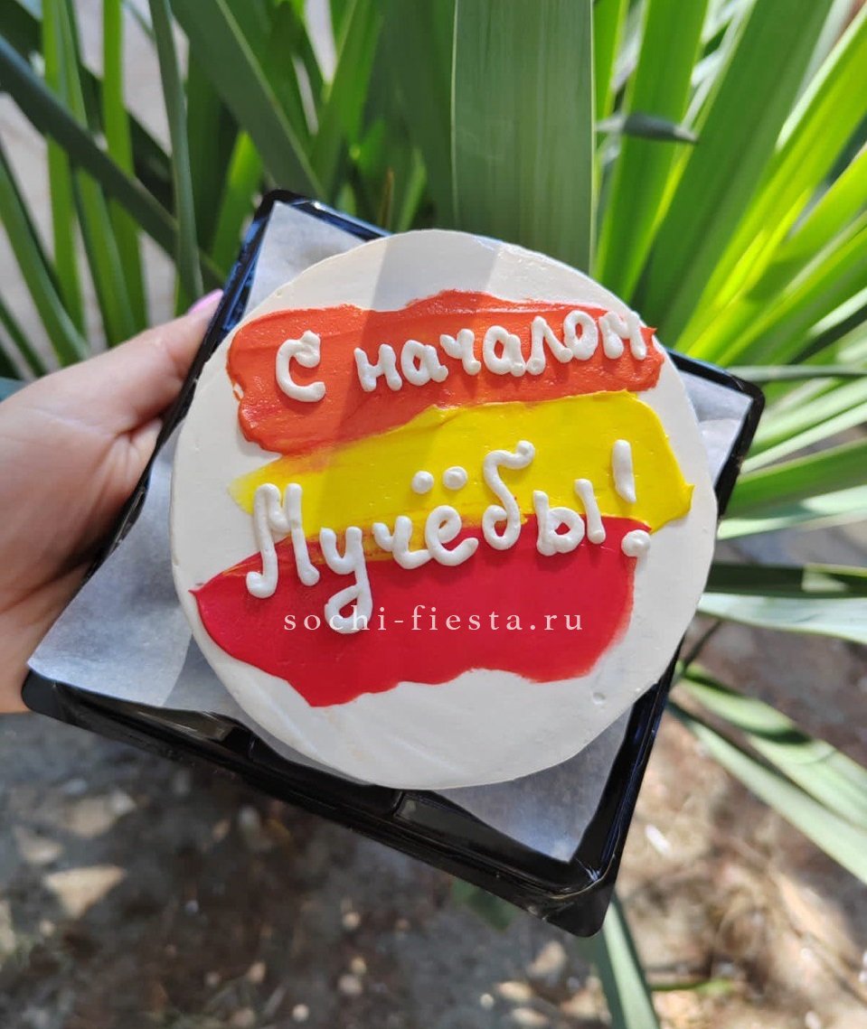 Компактный десерт ручной работы с весенним оформлением в красно-белой гамме. Кремовая текстура и графичный декор создают праздничное настроение. Два варианта начинки позволяют выбрать любимый вкус.