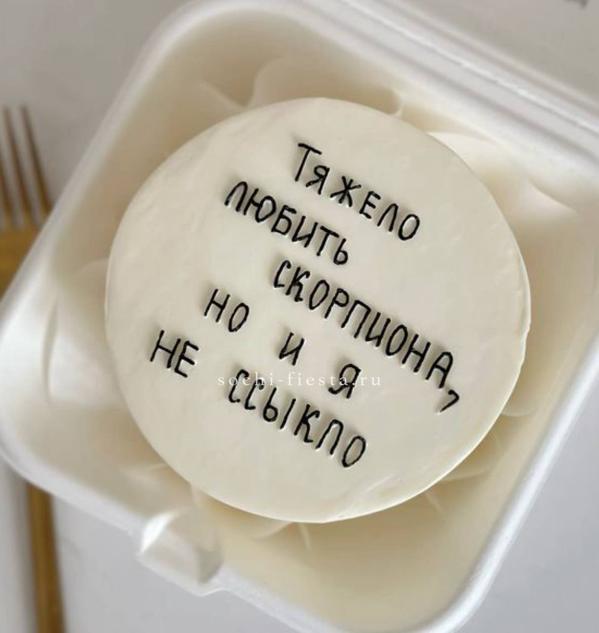 Три слова на поверхности торта говорят без лишних объяснений. Крем и декор создают завершенную картинку в формате персональной порции. Начинка на выбор делает момент еще приятнее.